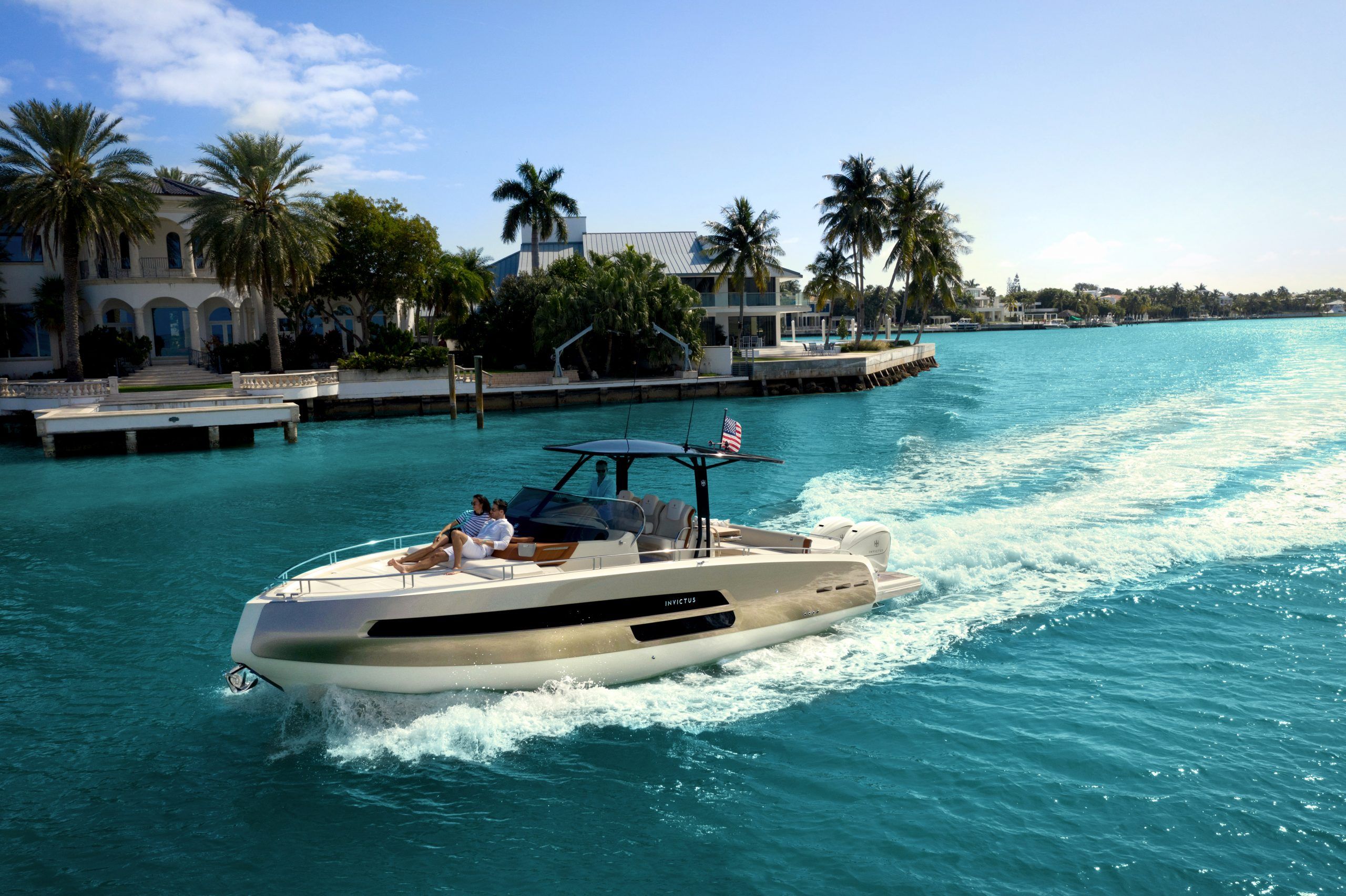 La Invictus GT370S llega para revolucionar los sentidos, demostrando que la evolución del lujo no se detiene. Con el modelo Invictus GT370S se alcanza una nueva frontera de belleza y elegancia. El elemento distintivo es el casco, con unos acabados de alta calidad en todos sus materiales, es la característica proa «semi invertida» del GT. Aquí el refinamiento y la potencia alcanzan el mejor equilibrio. La Invictus GT 370 S es la cima del lujo y el estilo, personalizable con elementos únicos para un barco de este tamaño, como la apertura lateral que se convierte en una terraza frente al mar, la plataforma hidráulica y una larga lista de detalles seleccionables. Las ventanas continuas de los lados se abren hacia una gran área, hechas para realzar la exclusividad de un crucero.